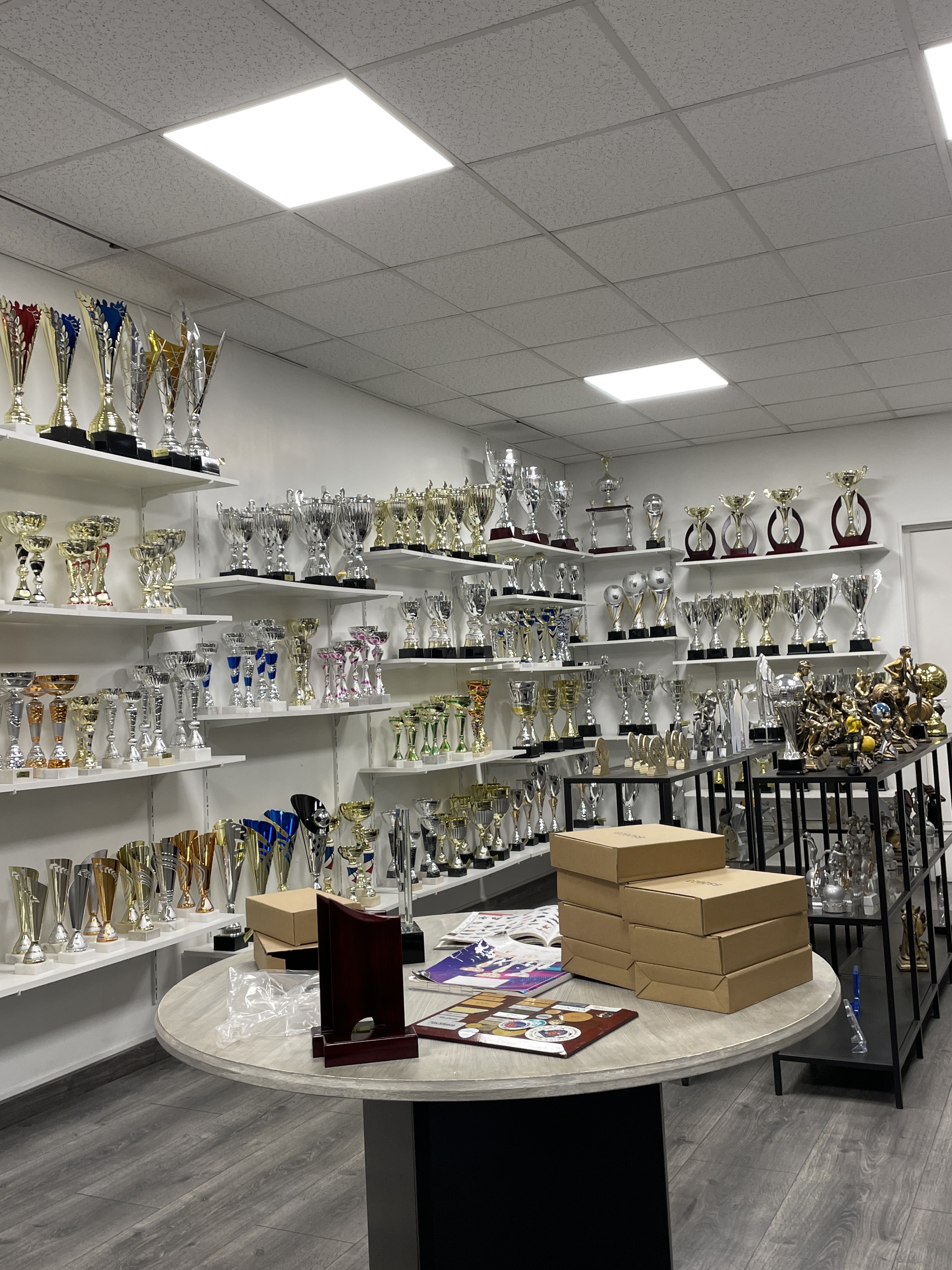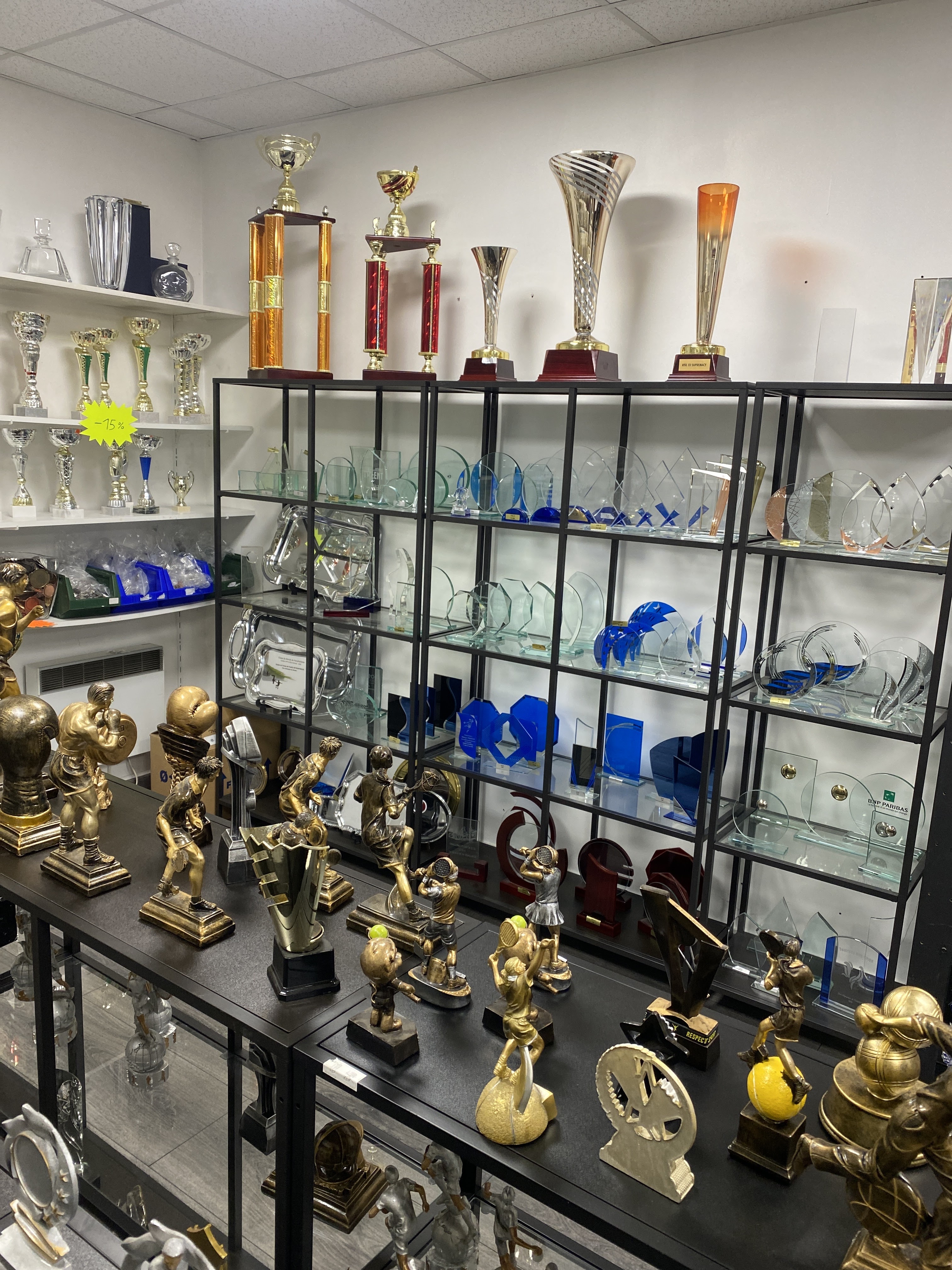 Très belle boutique, grand choix de coupes et trophées pour tous vos événements sportifs !
